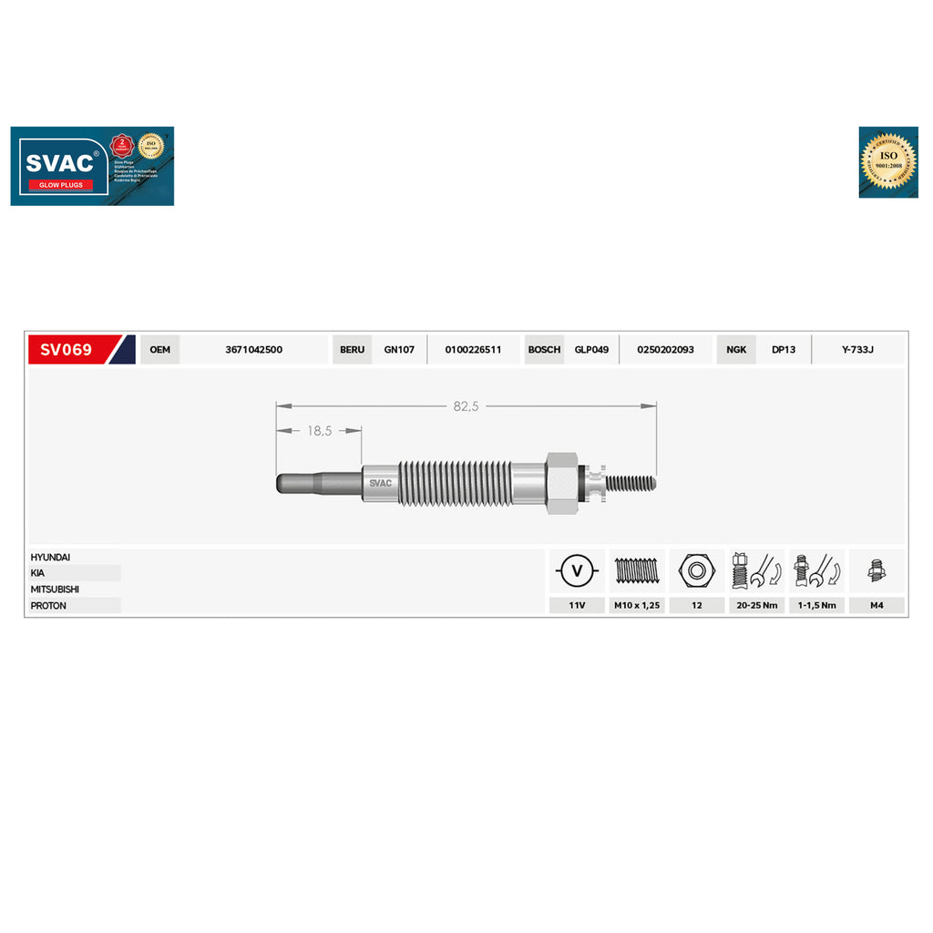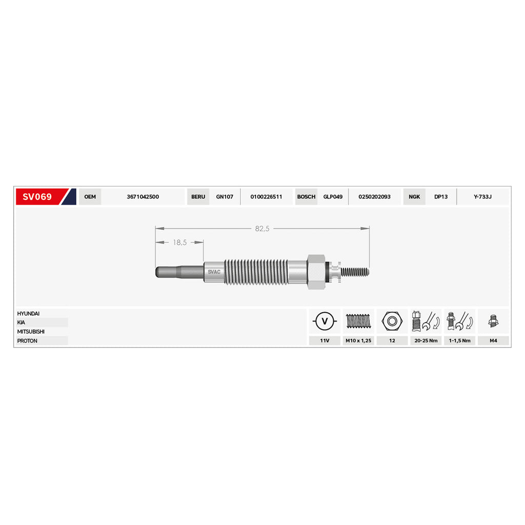 Hyundai Terracan Heater Glow Plug Kia K2500 Mitsubishi Proton 3671042500